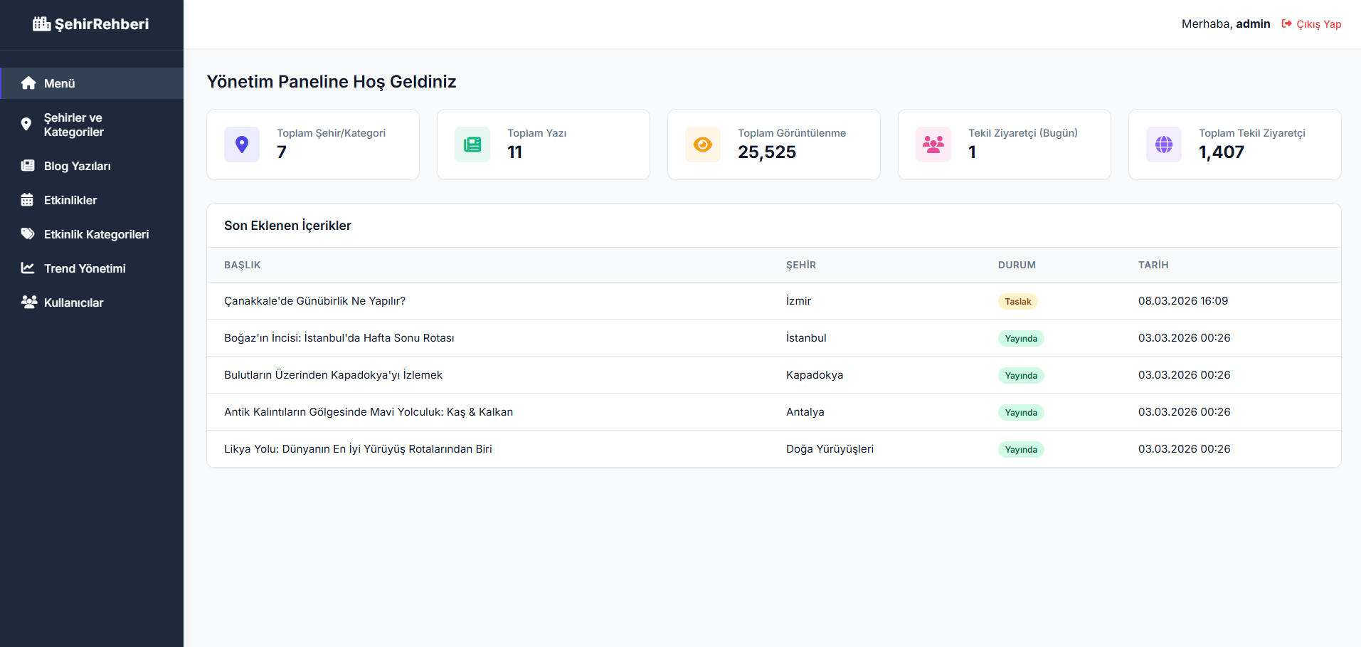Gezi veya Kişisel amaçlı kullanabileceğiniz Blog sitesi sripti